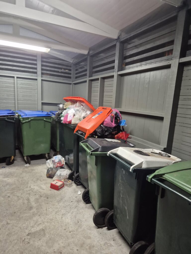 Det finns förvisso en återvinningsstation nere vid T-bryggan som vissa av oss kan en omväg till, men om detta absolut inte går så hör hellre av er till styrelsen eller gör en engångsinsats och släng saker i restavfallet om det krisar. Och gällande de sopor som syns vid elavfallet, så måste detta ombesörjas på återvinningscentralen alternativt den årliga containern.